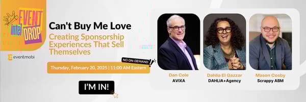 I want to invite you to something special. EventMobi will be bringing in Dan Cole, Mason Cosby, and me for a no-fluff⚡FREE LIVE EVENT⚡ that'll transform how you think about sponsorship packages.