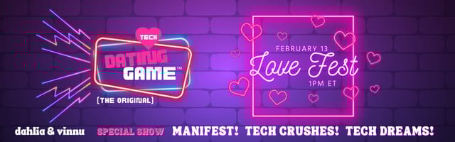LOVE is in the (virtual) air! π»β€οΈ Join us this Thursday February 13th for a Valentineβs special Event Tech Dating Game production: Tech Love Fest!